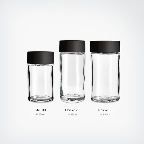 Preserve pre-rolls in airtight glass jars designed for multipacks in Mini, Classic and King size. Pair with lined child-resistant closures to maintain freshness in packaged pre-rolls.