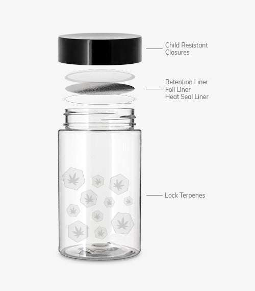 Both materials effectively block oxygen and lock in terpenes, ensuring product integrity. All jars are reusable, recyclable, and compatible with child-resistant closures.
